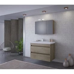 Έπιπλο μπάνιου σετ με νιπτήρα και καθρέπτη με ντουλάπι DROP MAGNOLIA S 100 Cm Rock Oak