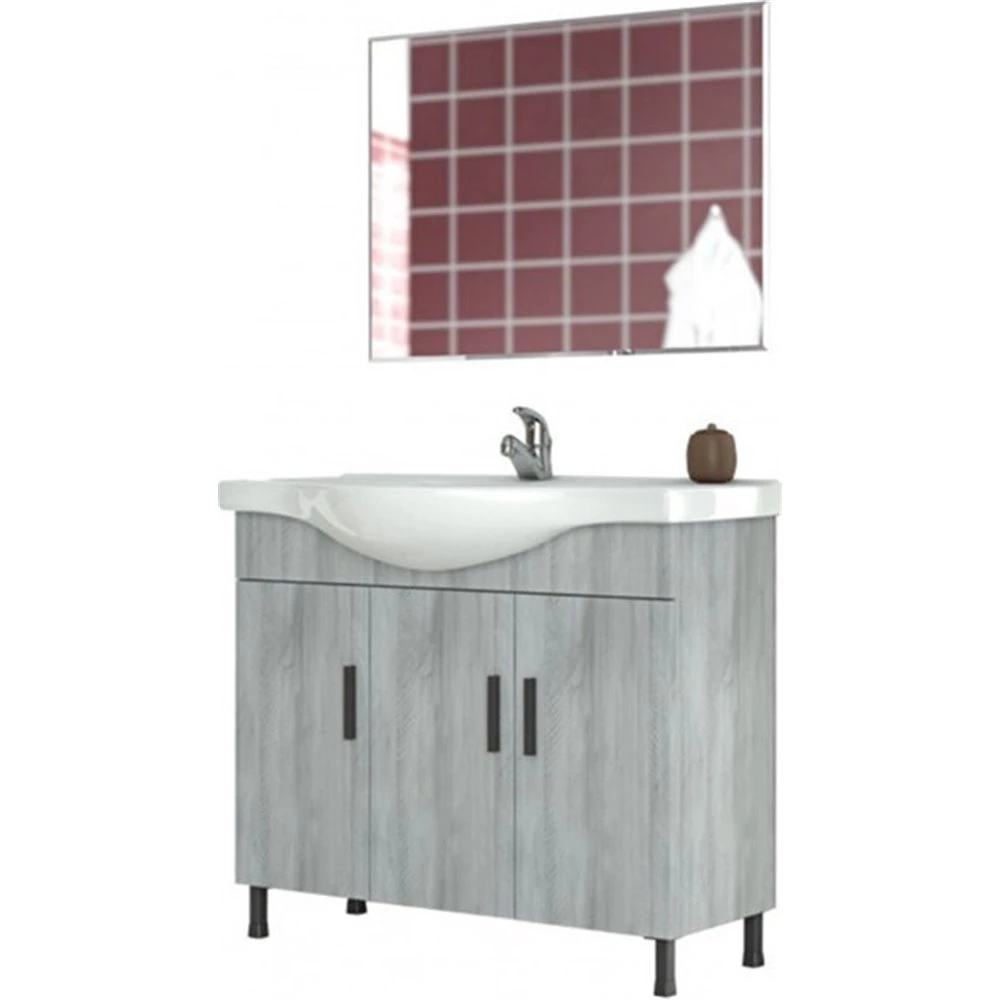 Έπιπλο μπάνιου σετ με νιπτήρα και καθρέπτη απλό DROP LUNA 100 cm GRAY