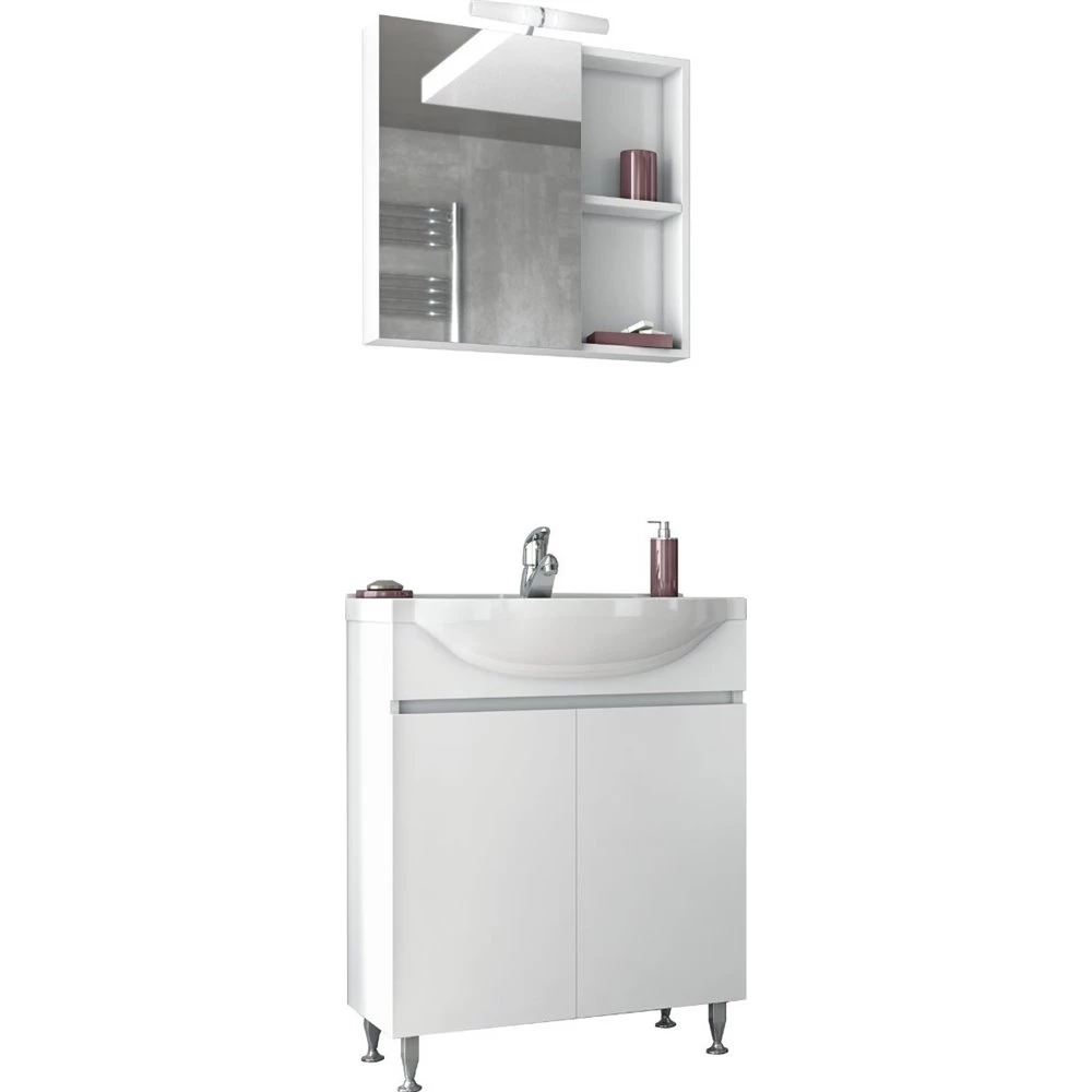 Έπιπλο μπάνιου σετ με νιπτήρα και καθρέπτη με ντουλάπι DROP ALFA 65 cm Λευκό