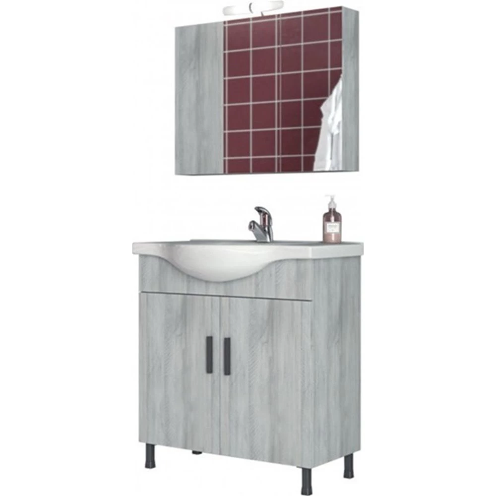 Έπιπλο μπάνιου σετ με νιπτήρα και καθρέπτη με ντουλάπι DROP LUNA 80 cm GRAY