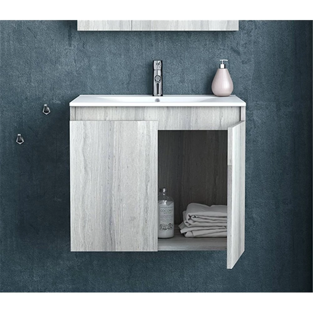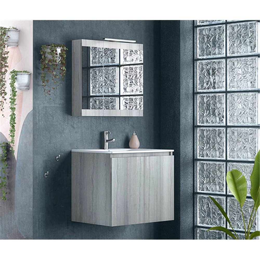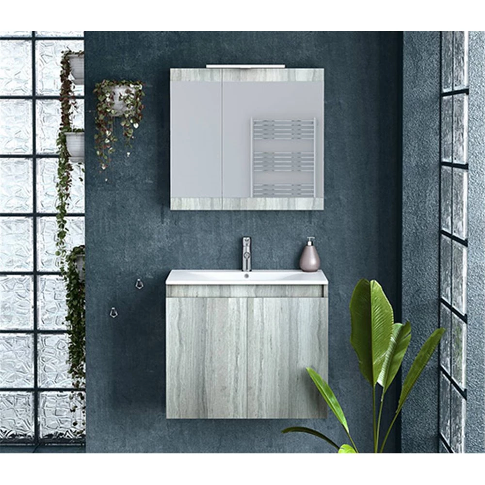 Έπιπλο μπάνιου σετ με νιπτήρα και καθρέπτη με ντουλάπι DROP MAGNOLIA S 60 cm Rock Oak