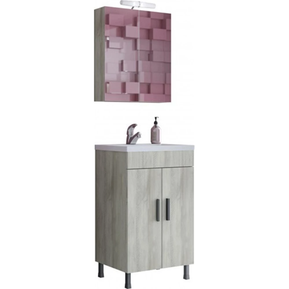 Έπιπλο μπάνιου σετ με νιπτήρα και καθρέπτη με ντουλάπι DROP ROMA 50 cm BEIGE