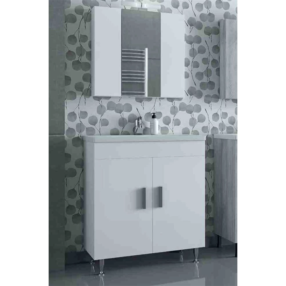 Έπιπλο μπάνιου σετ με νιπτήρα και καθρέπτη με ντουλάπι DROP ROMA 70 cm Λευκό