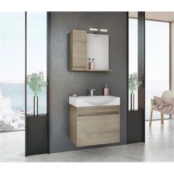 Έπιπλο μπάνιου σετ με νιπτήρα και καθρέπτη με ντουλάπι DROP SENSO 65 cm PL Wood