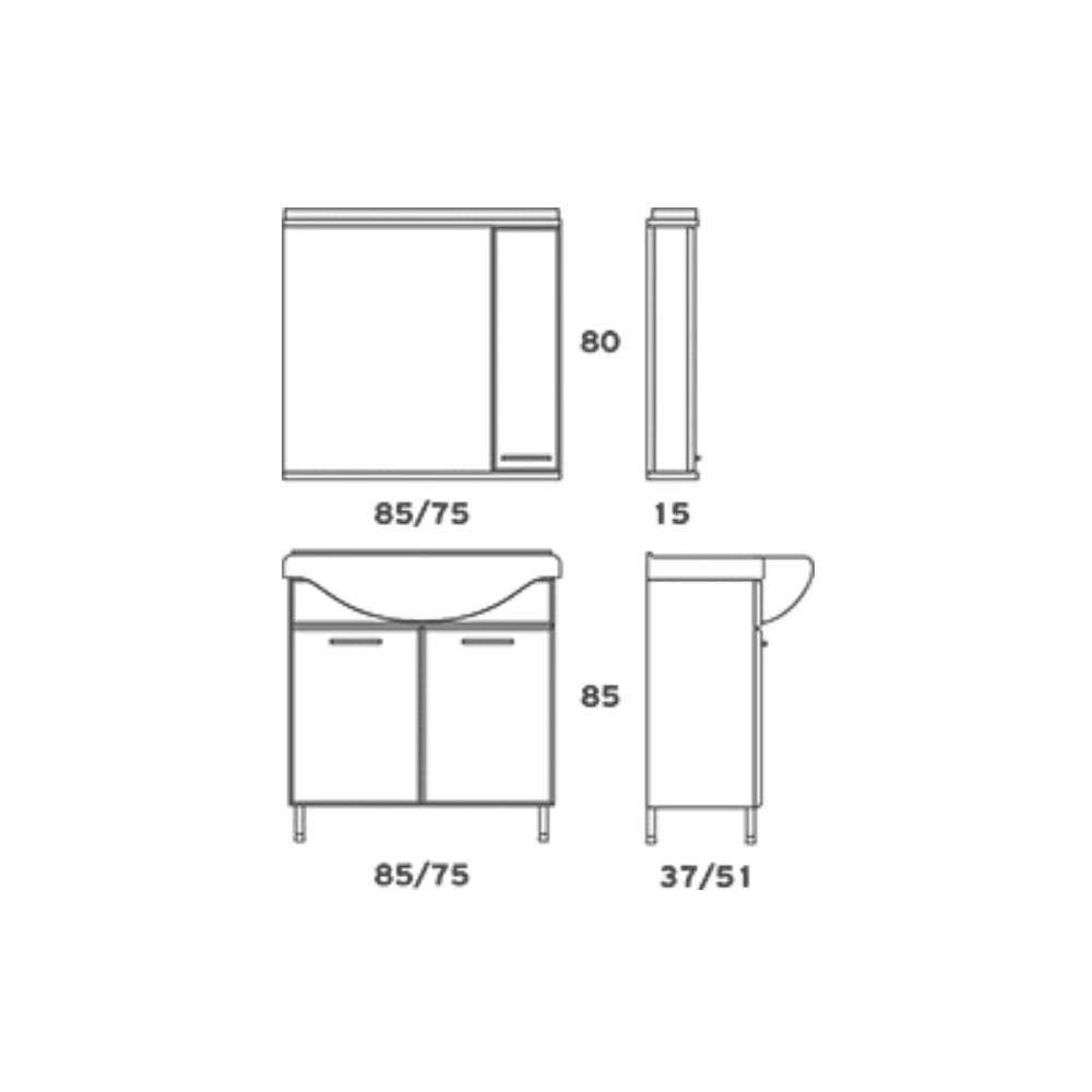 Έπιπλο Μπάνιου ZEBIS OCEAN 075 (75 x 85 x 51 cm)