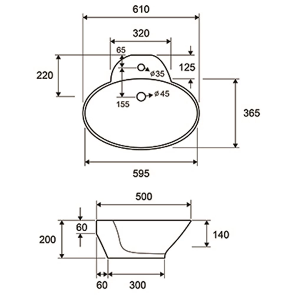 Νιπτήρας επικαθήμενος KARAG LT 3072 61×49,5 cm
