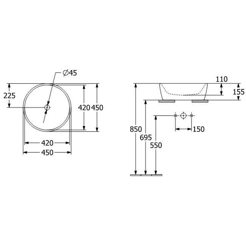 - Χωρίς οπή για μπαταρία νιπτήρος