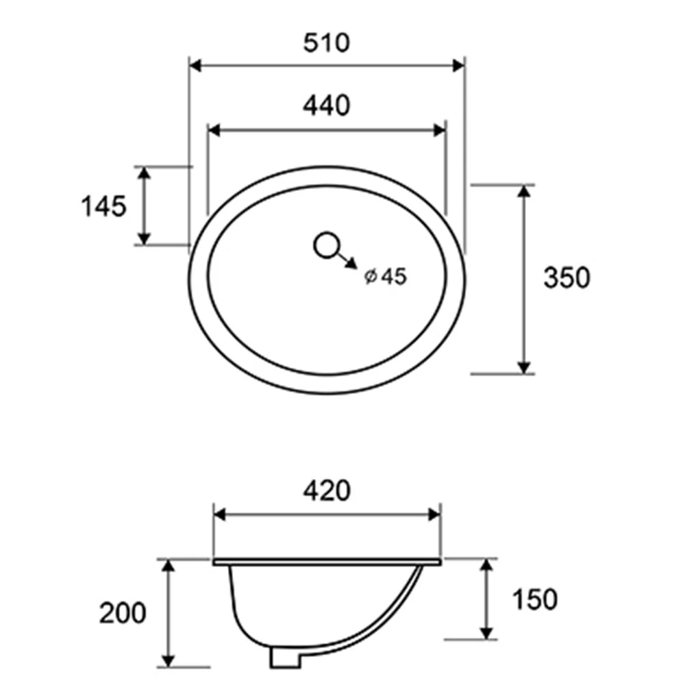 Νιπτήρας υποκαθήμενος KARAG LT 6005 51×39 cm