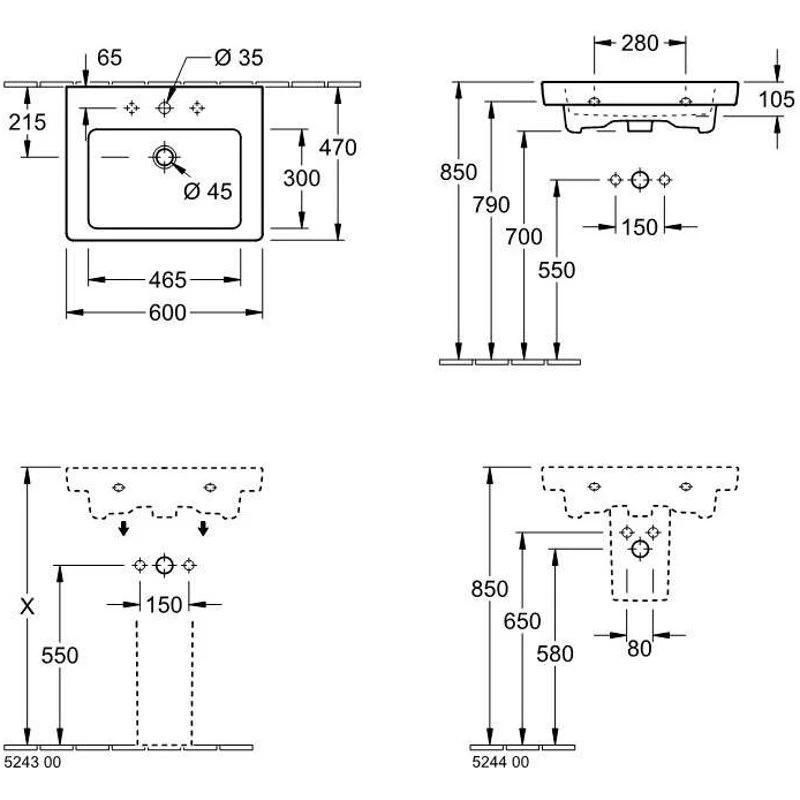 Νιπτήρας κρεμαστός VILLEROY & BOCH SUBWAY 2.0 60×47 71136001